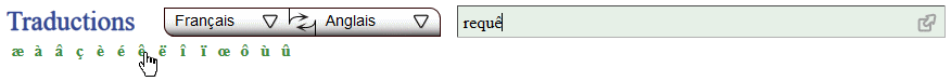 Mode Comparaison, ajoutez une barre |. Par exemple, la requête en Traductions du français vers l'anglais du terme français « repas| » sélectionne le