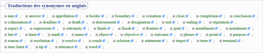 Mode Texte de la requête en Traductions du mot français « terme » vers l'anglais. Elles sont organisées en 1 seule constellation :
