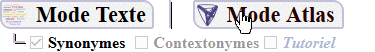 Mode Texte est le Mode en cours de visualisation, les Atlas sémantiques proposent :
