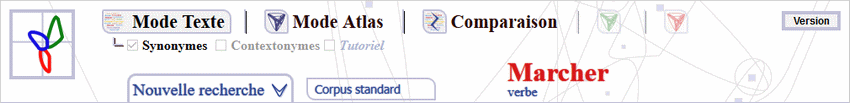 Mode Texte et présentera une liste de termes proches par association dans les usages de la requête. Par exemple, en français, les mots « noir », « neige », « oeuf » sont des contextonymes du mot « blanc ».