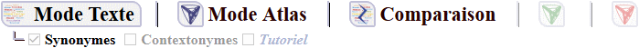 Mode Contextonymes est actuellement en développement. Il vous permettra d'obtenir des cartes des contextonymes associés aux termes de vos requêtes.